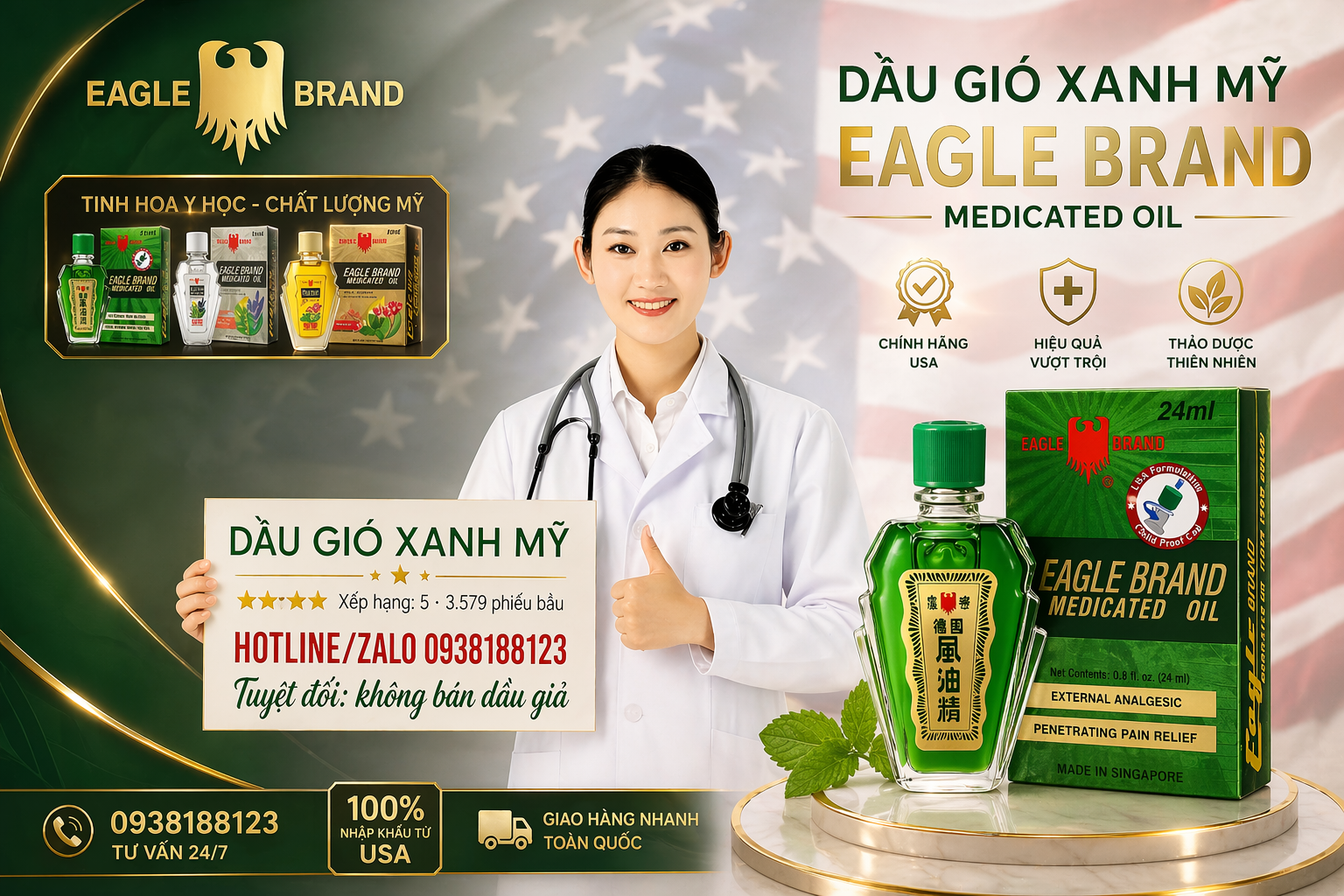 Shop Dầu Mỹ chuyên cung cấp sỉ và lẻ các loại dầu gió Mỹ, hãng Eagle Brand và Longevity Nano, khi quý khách cần loại nào chỉ cần gọi hoặc nhắn tin qua zalo cho shop tư vấn và báo giá tại thời điểm khách cần, nhanh chóng và ship hàng thu hộ toàn quốc, đơn hàng từ 3 chai trở lên được free ship.